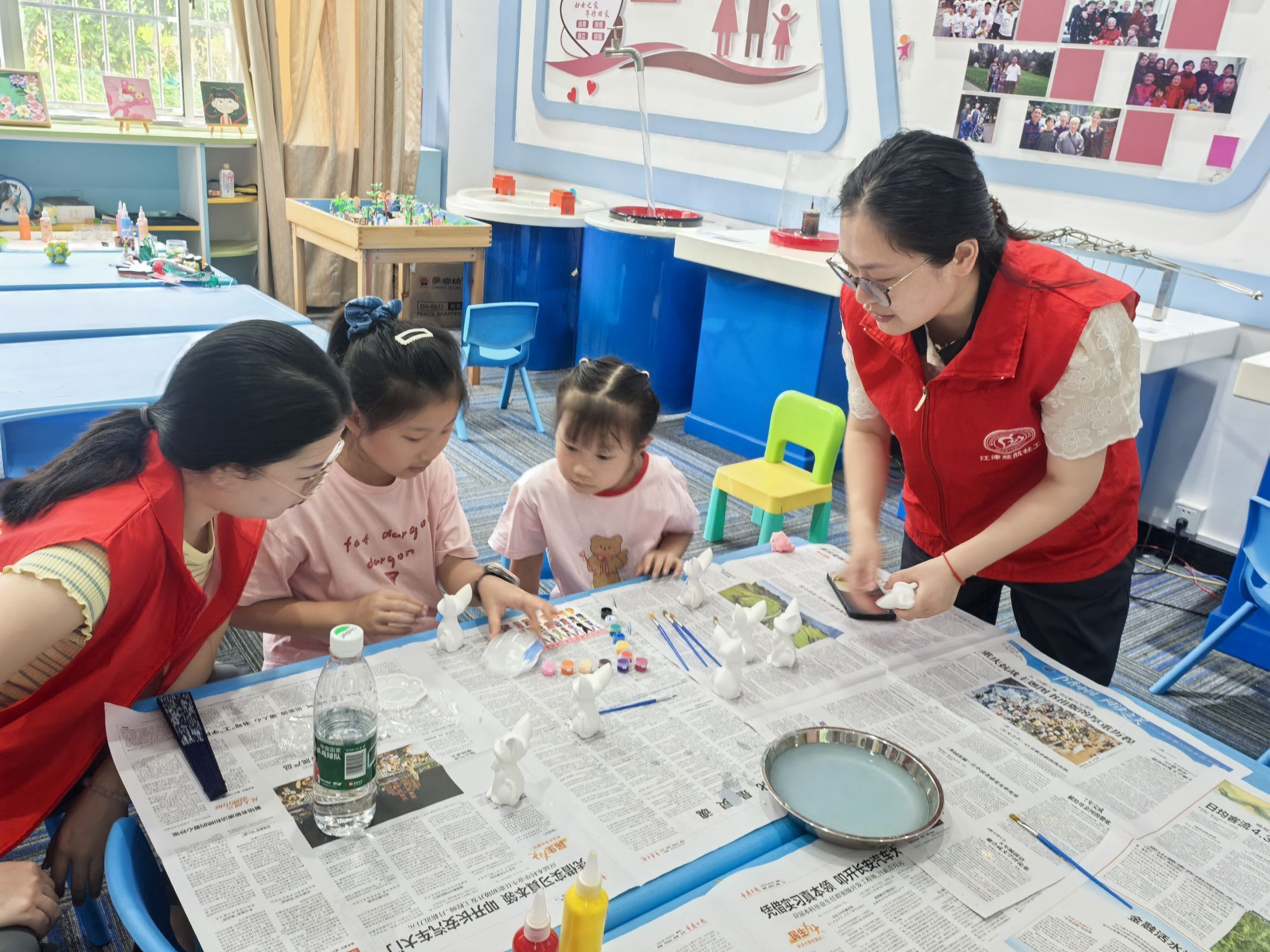 活动中,孩子们兴致勃勃地挑选卡通造型石膏坯,用颜料涂绘石膏娃娃,志愿者和家长协助创作,现场气氛温馨。完成作品后,孩子们自豪地展示自己的艺术成果,现场充满欢声笑语。活动同时融入安全教育,通过垃圾分类游戏和防溺水知识讲解,提升儿童安全意识。亲子互动中既培养了创造力,又强化了安全防护意识,获得居民一致好评。